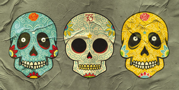 Illustrations mexican skulls. Personal work. Silkscreen.
