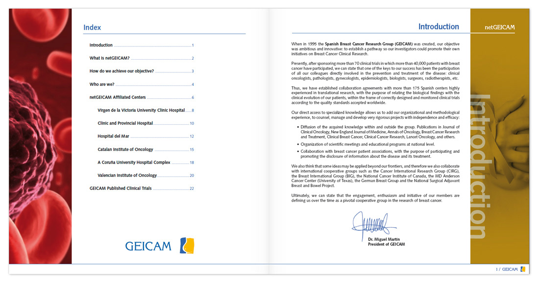 Brochure for GEICAM (Spanish Breast Cancer Research Group)